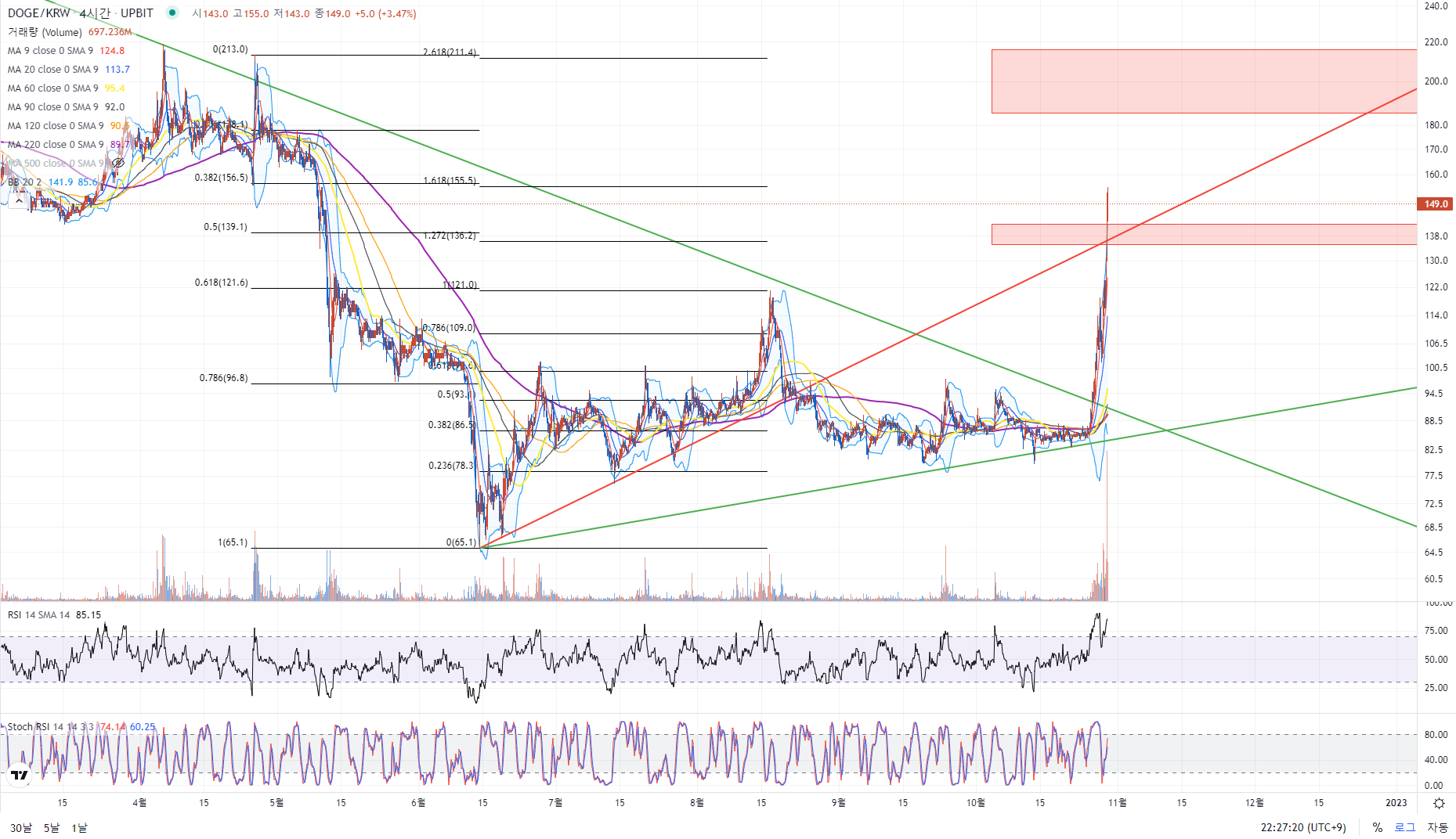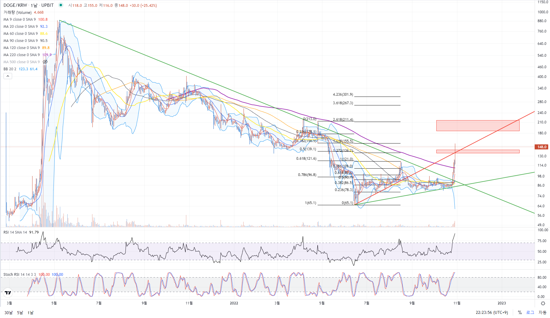 .- 위 차트는 참고용으로 첨부한 도지코인 5분 봉 차트입니다.