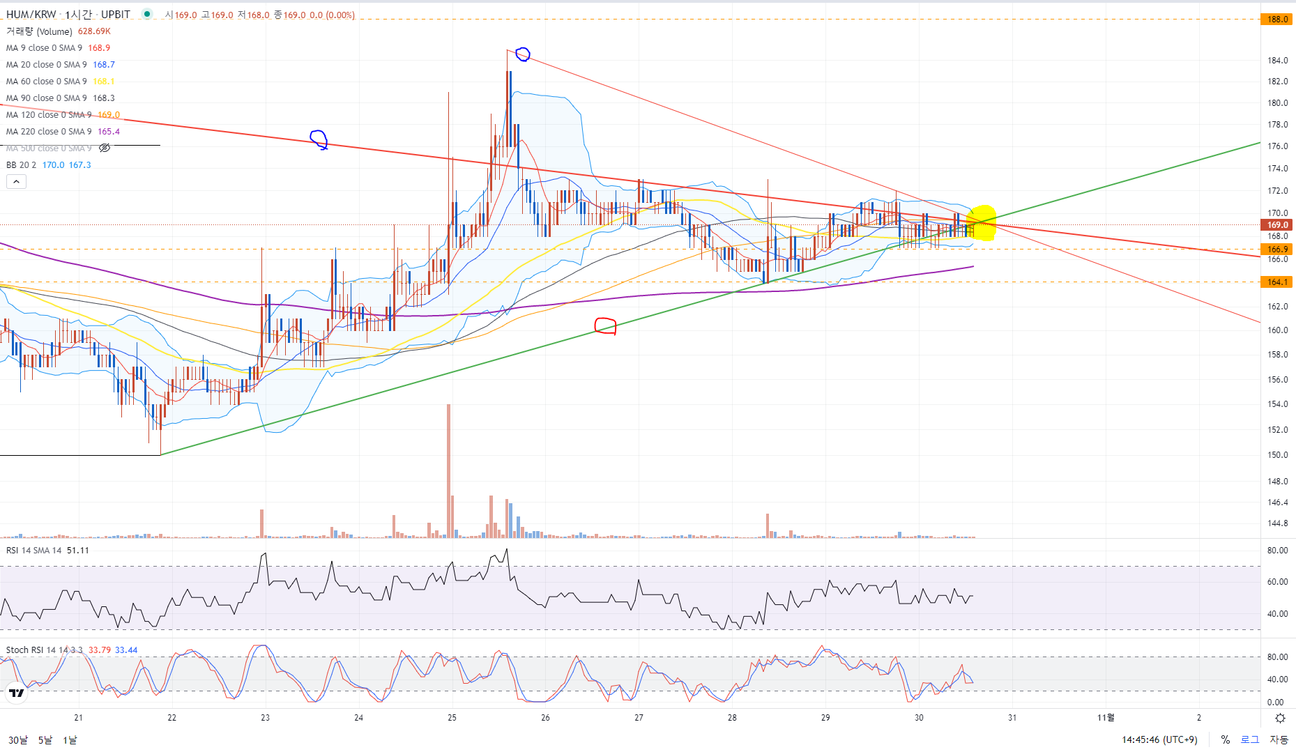 .- 여기서 상승/하락 어떤 것이 나올지 알 수없지만 하락한다면 1시간 봉 기준 아래에 있는 220일 선에서 지지 받는 것이 좋아보입니다.