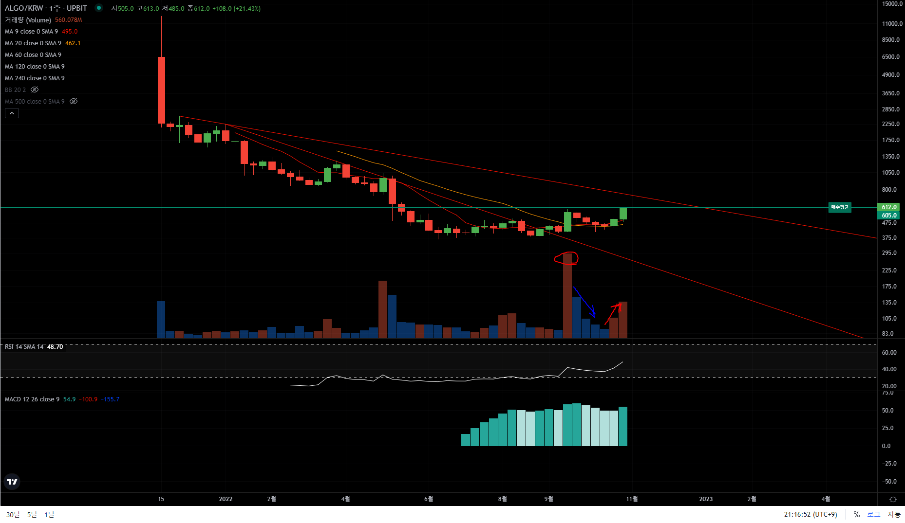 (1) 주봉상 상승에 대한 거래량이 많이 터짐