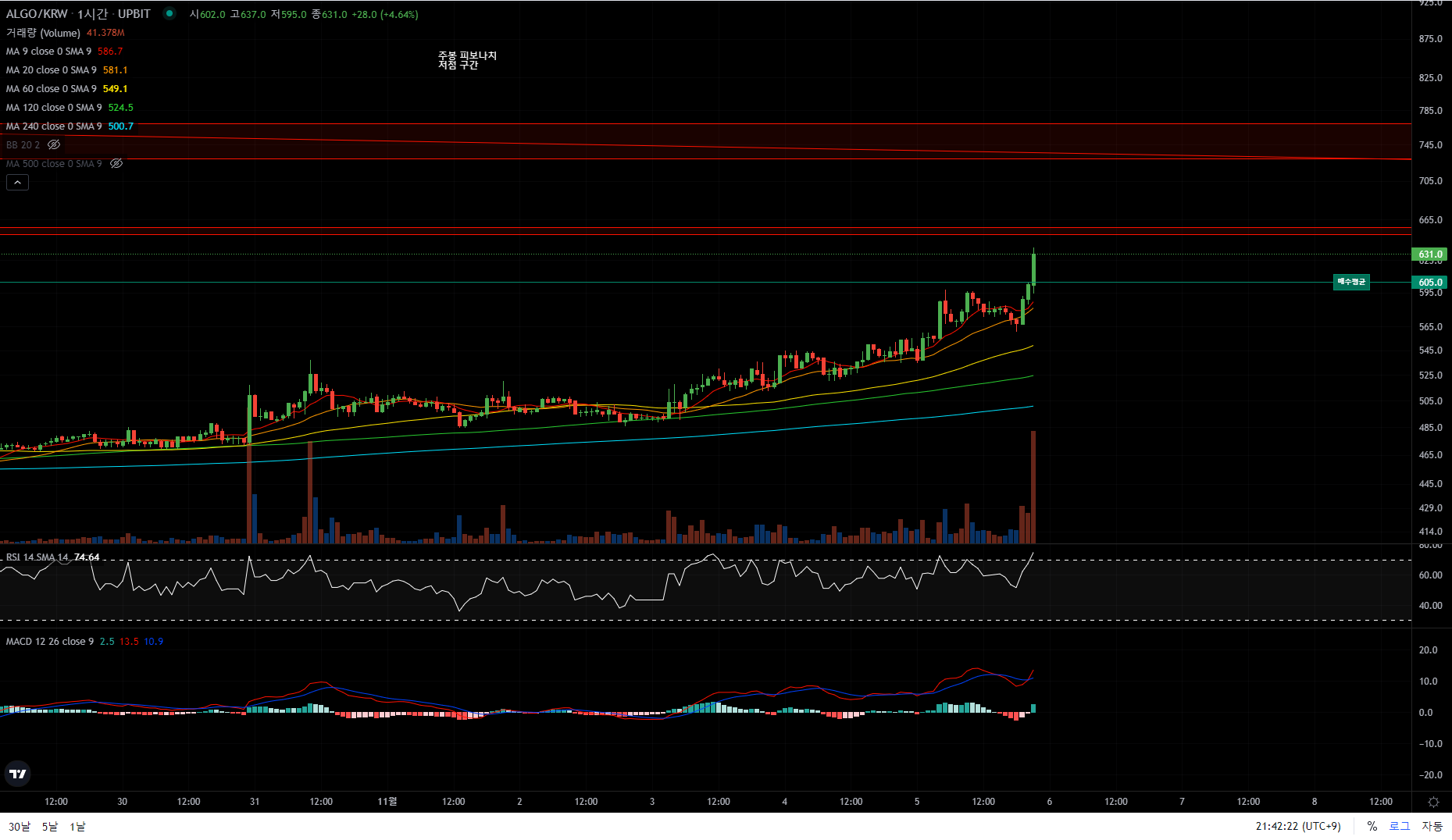 .- 1시간 봉 상 MACD 골든 크로스 확인