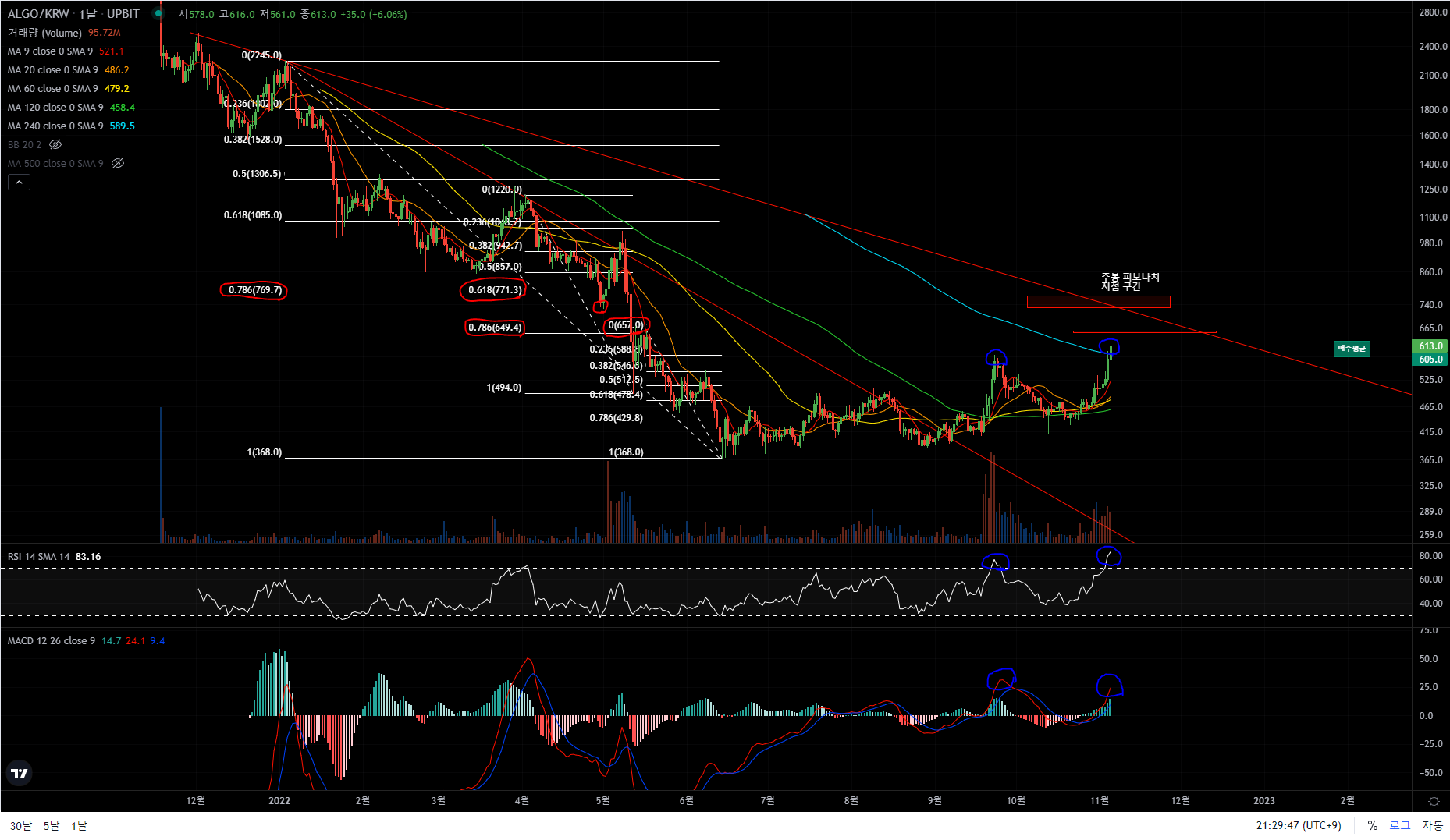 [240일 이평선 or 피보나치 0.236 (588)에서 지지가 나오면 홀딩]