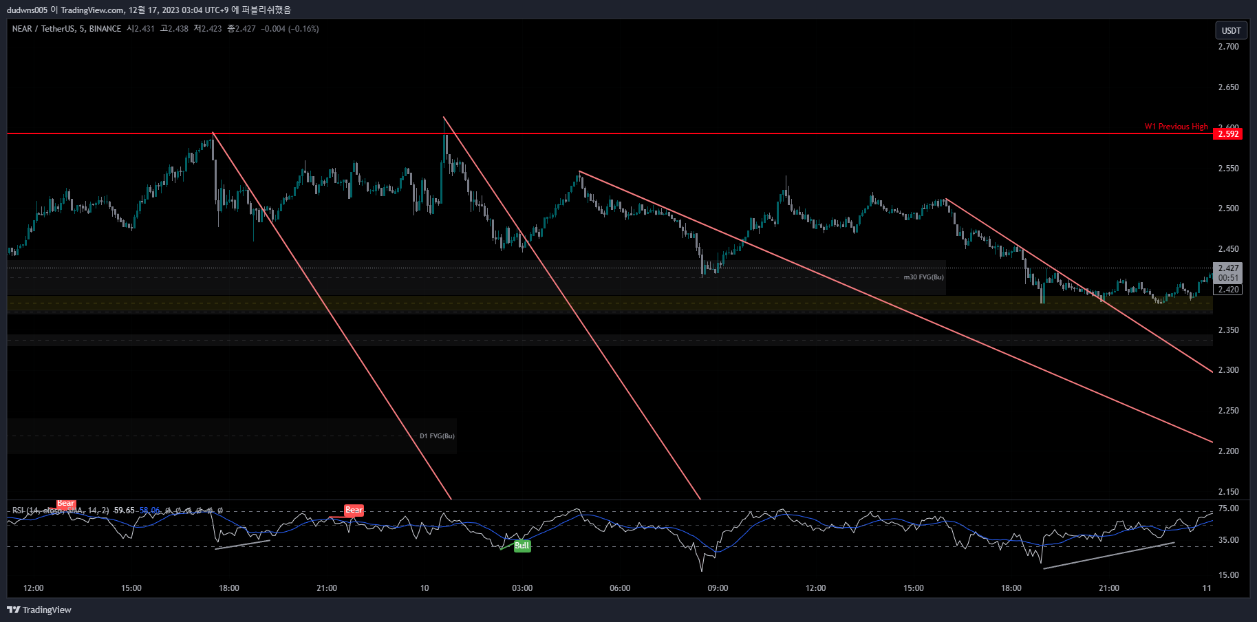 NEARUSDT m5 차트입니다.